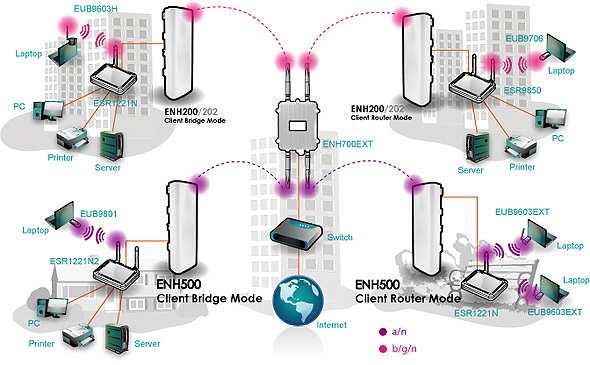 ENH202 Wireless Outdoor CPE features 10dBi high gain antenna dual polarization with high output power and high sensitivity can extend the transmission range to deliver a stable wireless connection. ENH202 integrates 4 operation modes: Access Point, Client Bridge, Client Router and WDS.